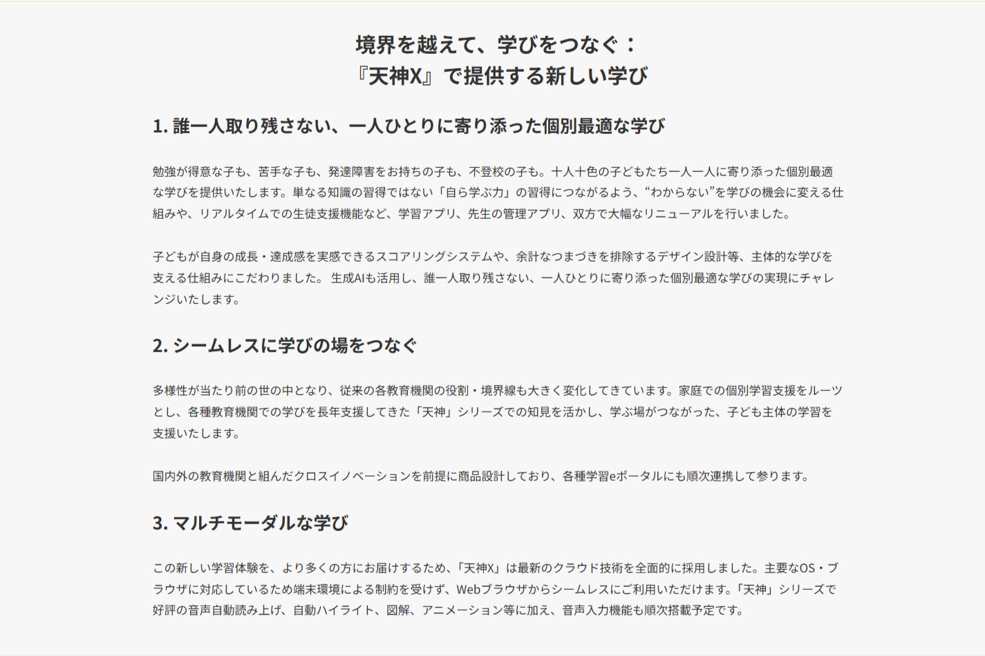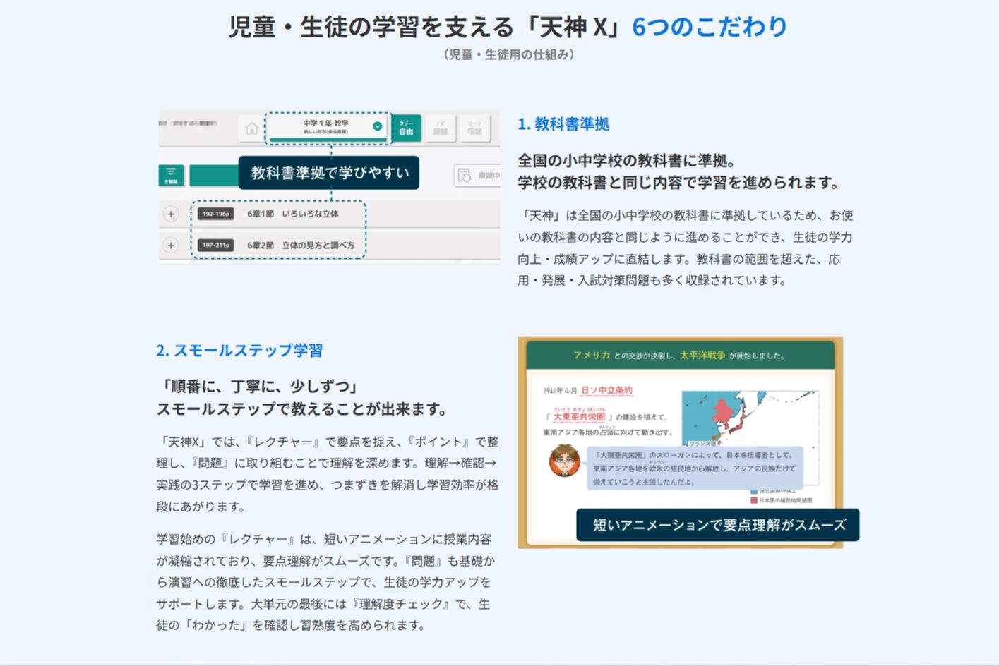 「天神 X」は、基礎~入試レベルまで、お子さまに最適な個別学習を提供します。
